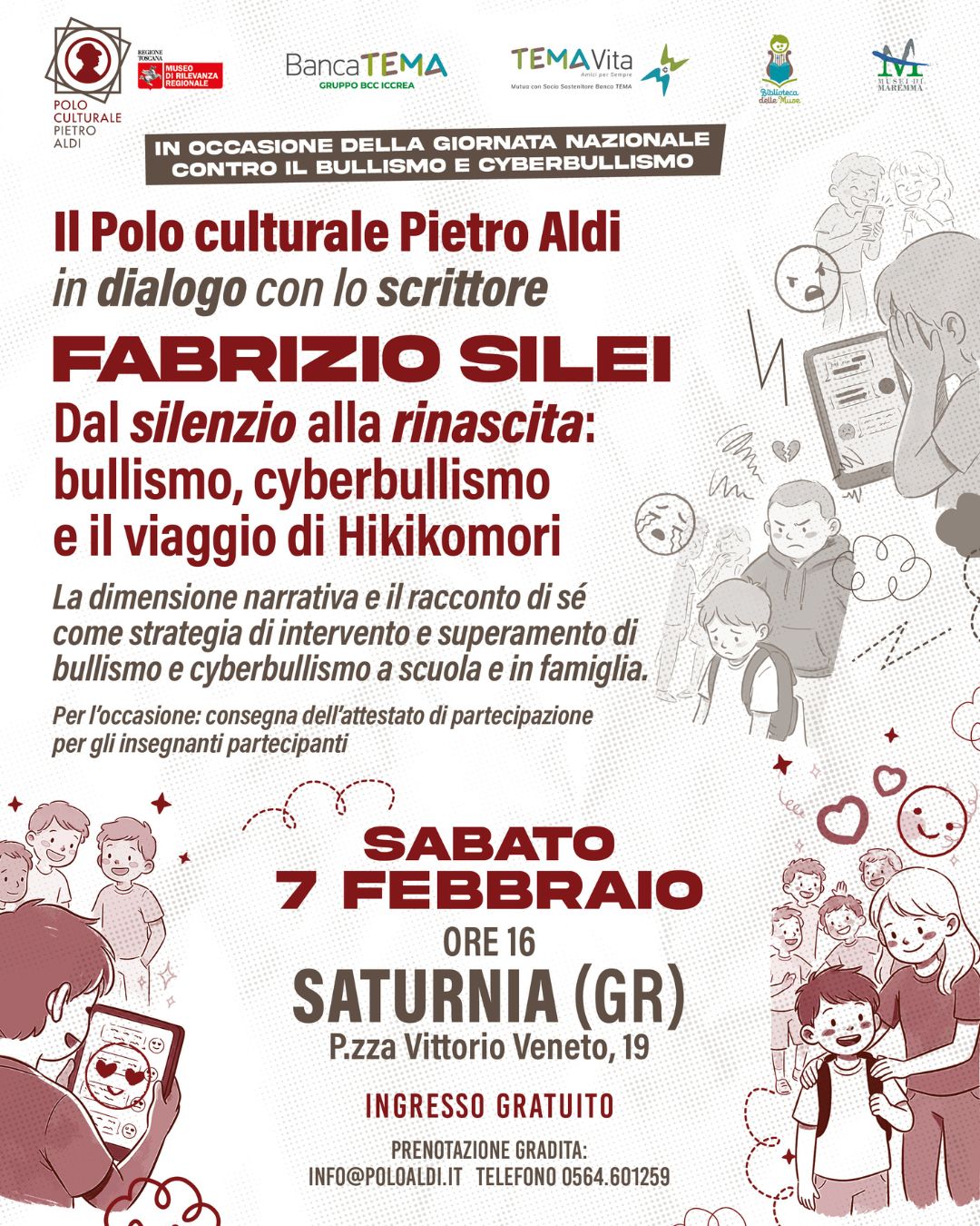 In occasione della Giornata Nazionale contro il Bullismo e il Cyberbullismo, il Polo culturale Pietro Aldi apre uno spazio di dialogo e di incontro insieme al sociologo e scrittore Fabrizio Silei.